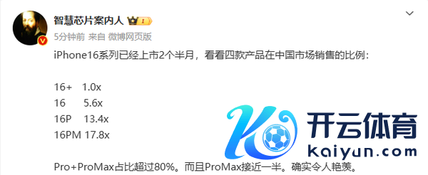苹果iPhone 16四款机型销量数据曝光 Pro系列占比80%云开体育